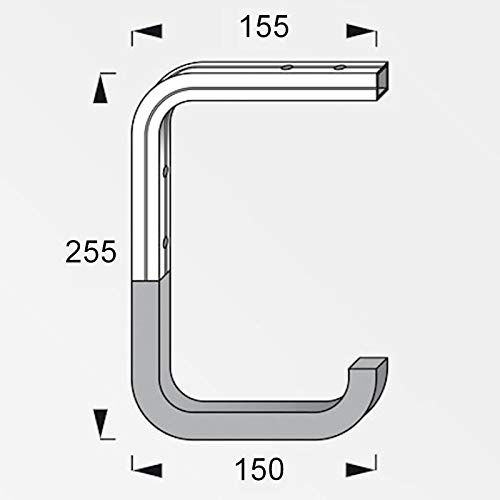 Dimensioni: tubo quadrato: 15 x 15 mm / altezza: 255 mm / profondità sopra: 155 mm / profondità sotto: 150 mm
