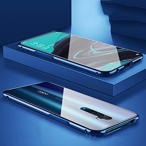 Orgstyle per Oppo Reno 2 Cover, Custodia Adsorbimento Magnetico Protettiva, Fronte e Retro in Vetro Temperato Trasparente Cover Paraurti in Metallo 360 Gradi Full Body Thin Fit Cover, Blu