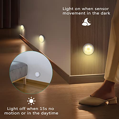 ORIA Luce Notturna Sensore di Movimento, 3Pcs Luci Notturne a LED, Lampada da Parete a Batteria, Bastone con Cuscinetti Adesivi, Luci di Sicurezza per Armadio, Camera da Letto (Bianco Caldo)