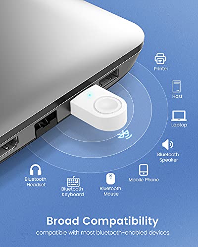 ♦ 【Mini Design】 Un adattatore Bluetooth USB estremamente compatto. L'adattatore USB Bluetooth 5.0 ha le dimensioni di una moneta. Ha un design incassato e non è facile da scivolare quando è collegato. Puoi salvare il ricevitore bluetooth sul tuo laptop o computer desktop per un uso futuro.