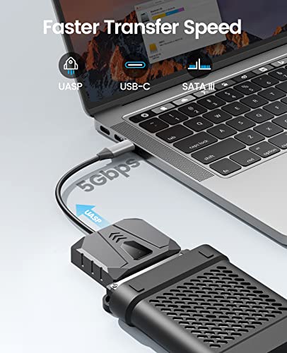 【6 Gbps con UASP】L'adattatore SATA a USB-C supporta velocità di trasferimento di 6 Gbps, inoltre è possibile sperimentare velocità di trasferimento fino al 70% più veloci rispetto alla tradizionale USB 3.0 quando si è collegati a un computer che supporta anche UASP.