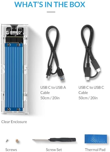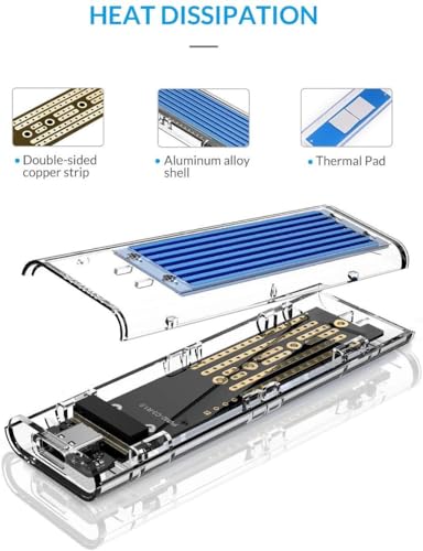 Durevole e portatile: elegante alloggiamento in plastica trasparente con parte superiore in alluminio protegge l'SSD M.2 NVMe e migliora la dissipazione del calore per garantire la coerenza a tutti i livelli di prestazioni. Ideale per il backup e il ripristino dei dati.