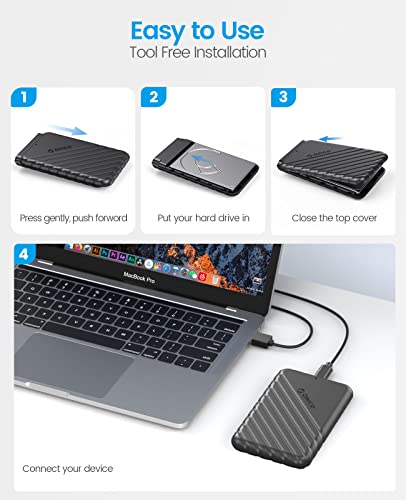 ORICO Case HDD 2.5 SATA USB 3.0, Case Hard Disk per HDD e SSD 9.5mm e 7mm, Supporto UASP, TRIM,Nessuno Strumento Richiesto(Nero)