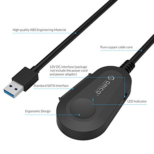 ORICO Conversor USB 3.0 a SATA Cable Adaptador para Disco Duro 2.5” / 3.5” HDD / SSD con Adaptador de Poder e Indicador negro LED(35UTS)