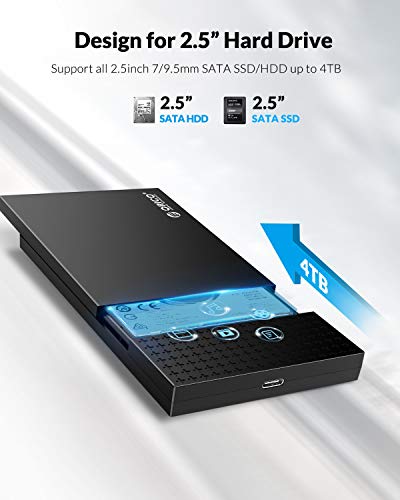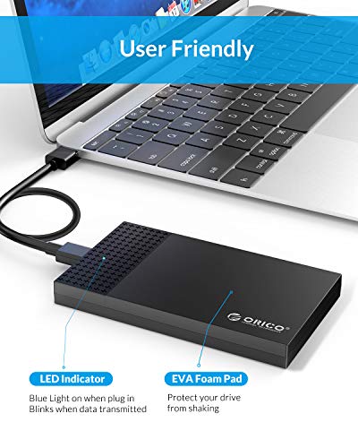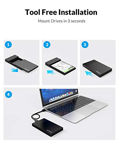 ORICO Custodia per Disco Rigido di USB C da 2,5 Pollici,USB 3.1 Gen1 a SATA 3.0 Hard Disk Case per HDD e SSD SATA da 7 mm a 9,5 mm,Supporto UASP (2526C3)