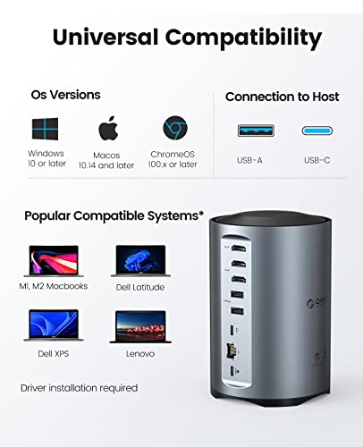 Ampia compatibilità - ORICO 15-in-1 Docking Station è compatibile con i sistemi Windows 8, 10, 11 e Mac. Funziona con computer USB-C, iPad, tablet e altri dispositivi, tra cui Hp, Dell, Acer, Lenovo, Samsung, MacBook e PC Windows. Lo slot per schede SD e TF