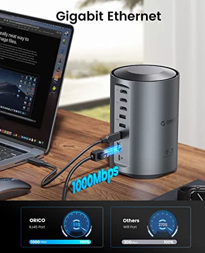 PD 100W + Gigabit Ethernet - La porta USB-C della docking station USB C di ORICO fornisce fino a 100W di potenza per caricare il laptop per il lavoro. Per evitare l'ansia da batteria scarica. La porta Ethernet fino a 1000Mbps consente una connessione stabile, per dire addio ai ritardi del WIFI e godere direttamente dell'ultravelocità e dell'affidabilità di una connessione cablata.