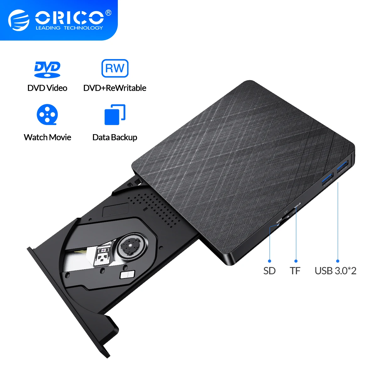 ORICO External Blu-ray Drive USB 3.0 HUB DVD-RW CD Writer Optical Drives Burner TF SD Card Reader for PC Laptop