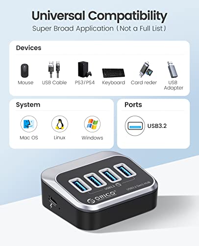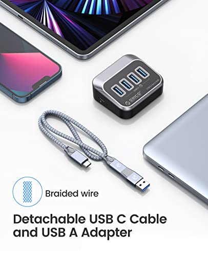 ORICO USB C Hub, 4 porte USB Hub con 0.5m cavo, 5Gbps trasferimento dati rapido Splitter USB con alimentazione 5V/2A porta C, Multi USB Adattatore per PC, laptop, Mac, stampante, HDD mobile