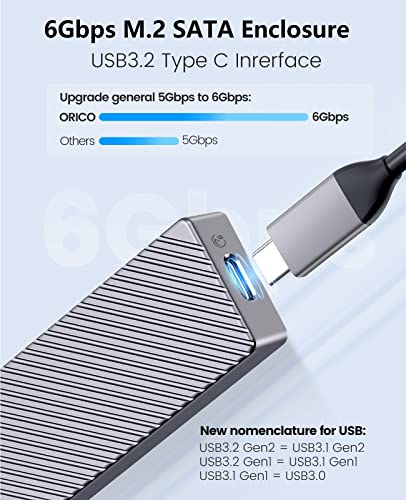 ORICO M.2 SATA SSD chassis, USB C 3.2 Gen1 6 Gbps Solid State Drive in alluminio esterno M2 supporto UASP per B-Key B+M Key SATA NGFF SSD 2230/2242/2260/2280 (fino a 4 TB)