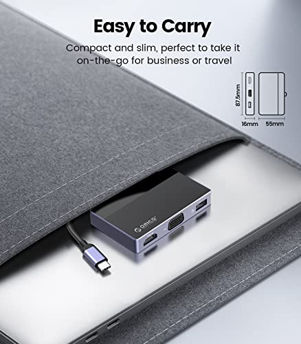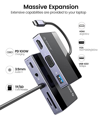 ORICO Hub USB, splitter USB 3.0 7 in 1, adattatore multiporta Tpy C con HDMI 4K, VGA, 100 W PD, 5 Gbps USB-A3.0×1, audio da 3,5 mm ×1, SD×1,TF×1, dock laptop per MacBook Pro/MacBook Air/Dell/HP/Lenovo