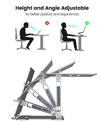 ORICO Supporto per computer portatile regolabile in altezza, con hub USB 3.0, lettore di schede SD, supporto per laptop da 11 a 15,6 pollici, MacBook Pro/Air (argento)