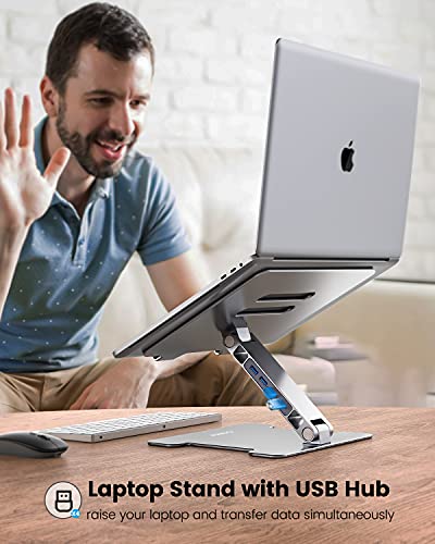 ORICO Supporto per laptop USB 3.0 Hub Supporto per laptop HomeOffice regolabile e ventilato per laptop (11-15,6 pollici), compatibile con MacBook Pro/Air, Dell, Lenovo (argento)