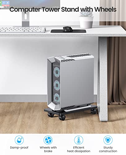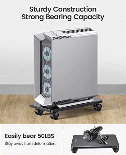 ORICO Supporto PC Portatile in Acciaio, con 2 Ruote di Bloccaggio e 2 Ruote Girevoli, in Acciaio, per Computer Desktop Tower (Nero, 41 x 21,3 x 2 cm)