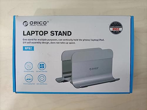 ORICO Supporto verticale per computer portatile, Vertical Laptop Stand regolabile, Supporto Verticale per Laptop in alluminio, per MacBook/Surface/Dell/laptop da gioco, grigio