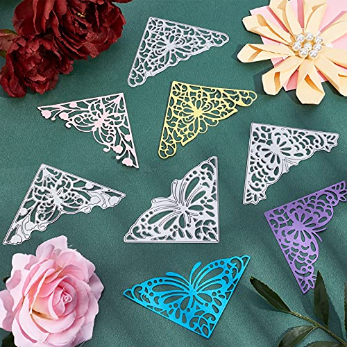 ORIGACH 4 Pezzi Fustelle Ad Angolo in Pizzo A Farfalla in Metallo Fustelle Ad Angolo Grande in Pizzo Fustellate Stencil per Creazione di Biglietti Decorativi per Scrapbooking Fai da Te