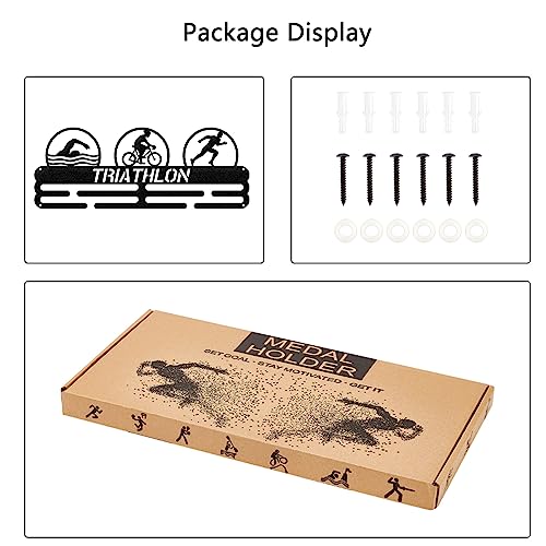 ORIGACH Supporto Medaglia Sport Porta Medaglie Triathlete Triathlon Swim Bike Run Nero Medaglia Mostra Staffa Metallica, 40 CM
