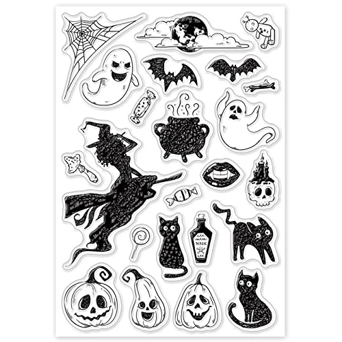 ORIGACH Timbro Trasparente di Halloween per la creazione di Cartoline Strega Zucca Fantasma Teschio Timbri Trasparenti in Silicone per Il Fai da Te Scrapbooking Album Decorativo