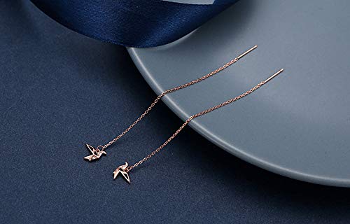 Origami - Orecchini pendenti in argento Sterling con nappa, con ciondolo a forma di gru, con catenina lunga, stile minimalista, idea regalo per donne e ragazze e Argento, colore: Oro rosa, cod. E629