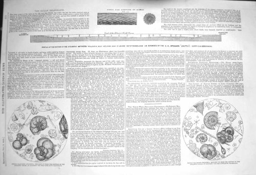 Original old antique victorian print ARTIDE ATLANTICA 1856 DELL'IRLANDA DEL TELEGRAFO DELL'OCEANO DI INFUSORIA