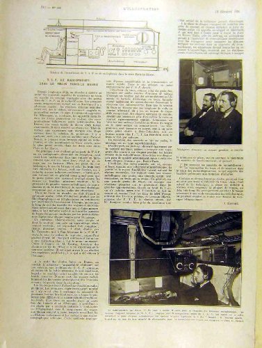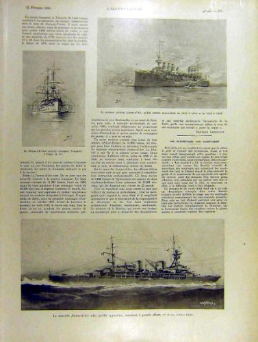 Original old antique victorian print Francese 1930 del Treno del Radio-Telefono dell'Incrociatore della Nave di Jeanne D'Arc