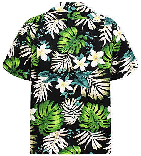 P.L.A. | Original Camicia Hawaiana | Signori | S - 4XL | Maniche Corte | Tasca Frontale | Hawaii Stampa | Fiori | Foglie Di Palma | Nero