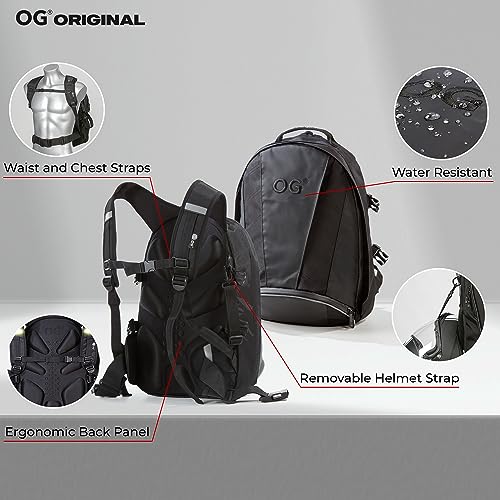 OG Original EZ-RiderPRO Zaino Moto Nero Espandibile 28-35L, Borsa Porta-Casco, Cinghia per Casco, Impermeabile, Portatile, Rifrangente, Logo Nero