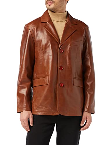 LLD Original - Giacca da uomo vintage di media lunghezza in vera pelle di pecora, colore nero e marrone chiaro Marrone chiaro XL
