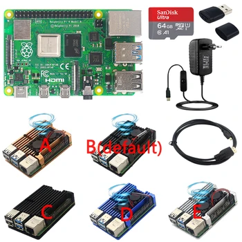 Original Raspberry Pi 4 Model B Kit + Aluminum Case + Heat Sink + 3A Switch Power + HDMI Cable Option 64 32GB SD Card |Reader