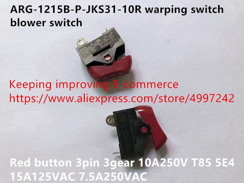Original new 100% ARG-1215B-P-JKS31-10R warping switch blower switch red button 3pin 3gear 10A250V T85 5E4 15A125VAC 7.5A250VAC