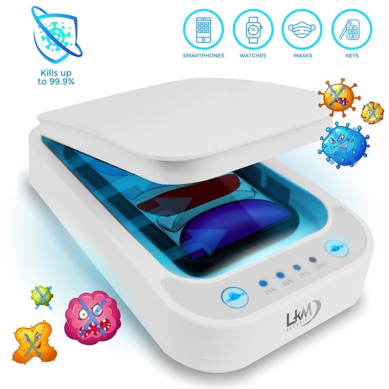 GekoClean Sterilizzatore U GekoClean - Sterilizza gli oggetti che utilizzi ogni giorno Dispositivo multifunzionale per la sterilizzazione con raggi UV. Uccide circa il 99.9% di batteri e virus sugli oggetti che utilizziamo ogni giorno Eliminate i germi senza sforzo. Grazie a questo sistema intuitivo sarà semplice per qualsiasi utente sterilizzare qualsiasi oggetto. Dopo aver accesso il prodotto la barra relativa all&rsquo avanzamento del processo di sterilizzazione ne mostrerà l&rsquo avanzamento. Disinfetta il tuo Smartphone. Sterilizza gli oggetti che utilizzi ogni giorno! Come rivelano recenti studi la quantità di batteri che si accumulano sul cellulare sono 18 volte più numerosi che in un bagno pubblico, lasciandoci con la necessità di trovare un prodotto adeguato con cui combattere germi e organismi invisibili ai nostri occhi. Carica Wireless Qi. Questo prodotto può sterilizzare nonché caricare il telefono, senza bisogno di spegnerlo. Aromaterapia Grazie a GekoClean potrete