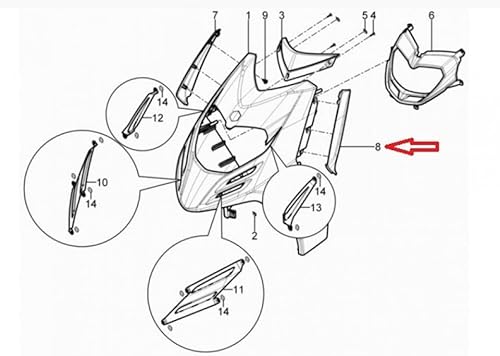 Copri-copertura, estensione del grembiule anteriore sinistro nuovo originale in plastica di colore grigio scuro. Questa copertura si trova a sinistra del grembiule anteriore numero 8 sulla vista esplosa. Fornito come da foto.