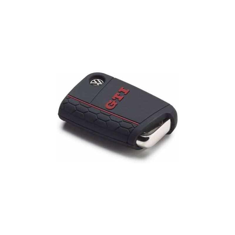Guscio chiave originale VW per modello GTI Accessori 100% originali Volkswagen Design: con scritta GTI e logo Volkswagen Colore: nero/rosso Materiale: silicone Adatto per VW Golf 7 (5G) con chiave 3 pulsanti
