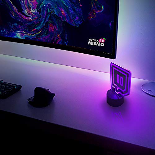 Originale lampada 3D LED con simbolo di Twitch, con base, cambio di colore, base con batterie, lampada notturna, in metacrilato, 3 mm, per streamer e per la zona gioco