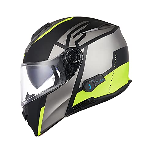 ORIGINE Casco Moto Modulare Bluetooth Omologato ECE Voice Dial Casco Moto Chiamata Vivavoce(LEVEL YELLOW BLACK,S)