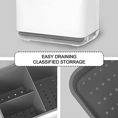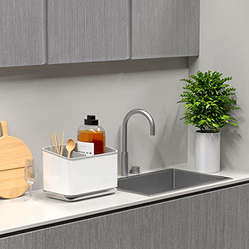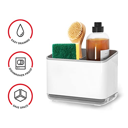 Orimade Contenitore per Il Lavello Tidy Composto da 3 Vani Organizer per Spugne e Spazzole con Vaschetta di Scolo Porta Utensili da Cucina Plastica Bianca