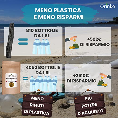 Orinko - Binchotan di Kishu Bio 5 X (200 g) Taglia M | Autentico Carbone Attivo Binchotan Tradizionale del Giappone (Wakayama) per purificazione dell'Acqua in caraffa
