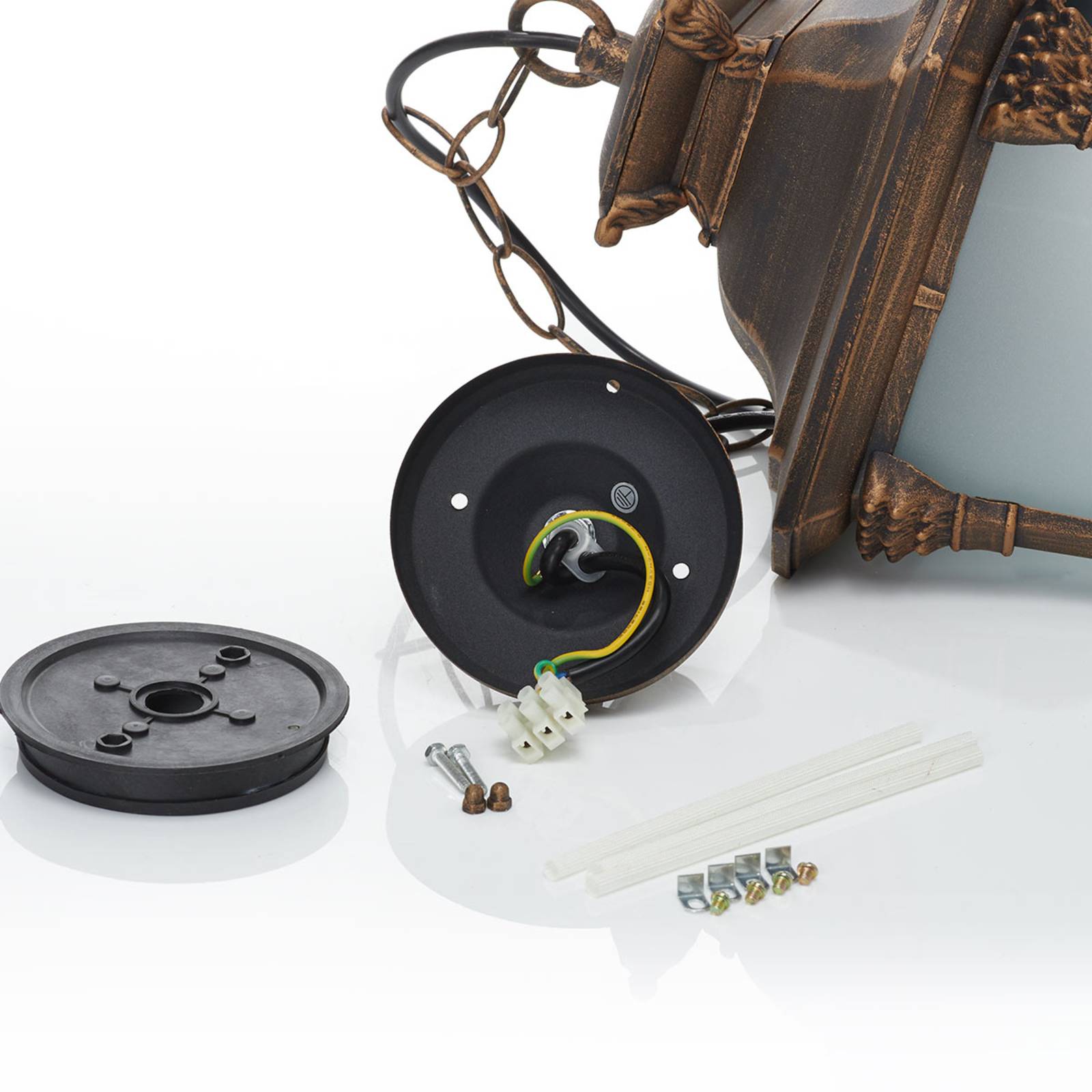 Lampada a sospensione per esterni Aiko - aspetto fiabesco con luce soffusa Questa lampada a sospensione per esterni affascina per il suo aspetto antico. È progettata per l'uso esterno. La combinazione dei dischi satinati del paralume con l'incorniciatura dettagliata crea un ambiente fiabesco e sognante. L'uso di vetri satinati impedisce l'abbagliamento della luce. In questo modo, la luce corrisponde all'aura nostalgica e autentica di questo apparecchio, emettendo più delicatamente.