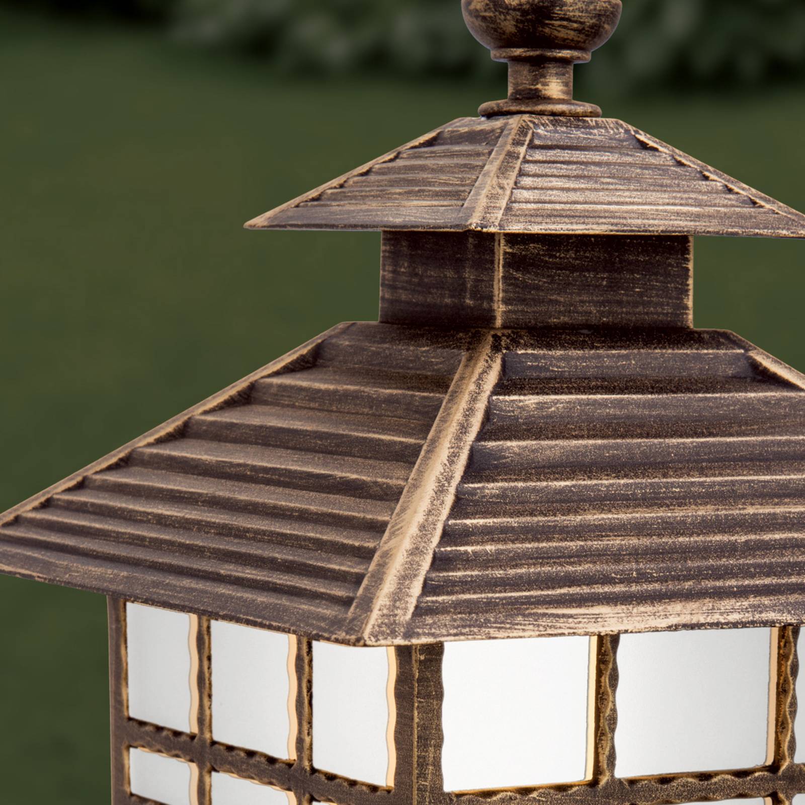 Pregiato lampione Ilka con paralume a lanterna Ilka è un lampione di bella forma, con telaio in alluminio pressofuso e ottica decorativa anticata. Insieme alle coperture di vetro satinato, si ottiene una luce elegante che garantisce un'illuminazione d'atmosfera.