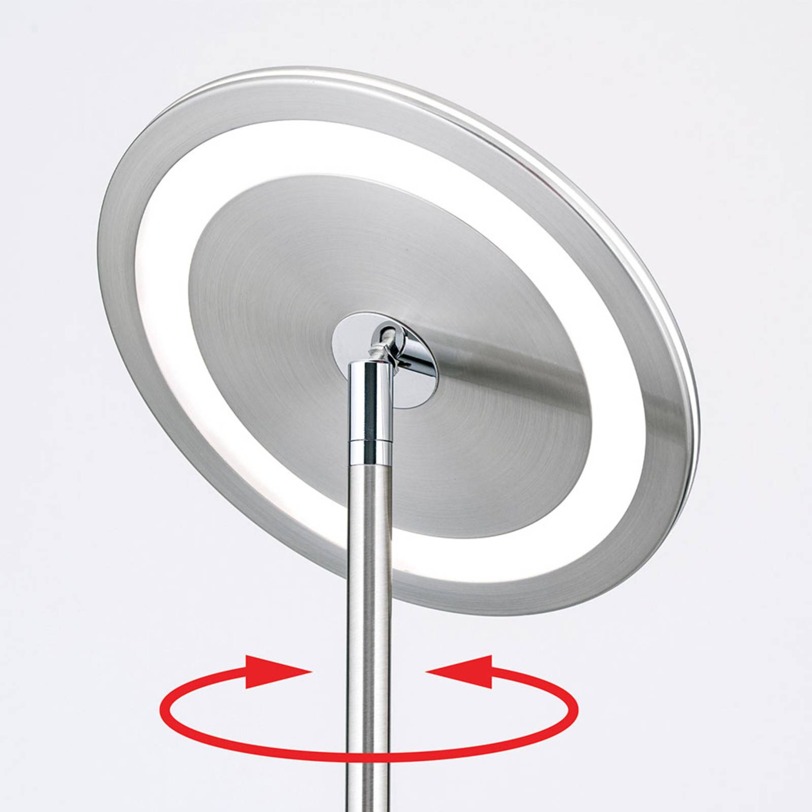 Moderna plafoniera Oscar LED con testa dell'apparecchio ruotabile e inclinabileLa plafoniera Oscar LED brilla per i suoi numerosi dettagli. Il punto più importante è la testa piatta e rotonda dell'apparecchio, che può essere ruotata individualmente e il disco inclinato lateralmente, il che conferisce alla plafoniera una speciale individualità in termini di design e di emissione luminosa. Soprattutto per questa funzionalità, Oscar non sembra essere "fisso" in nessun punto della zona giorno e notte, ma può essere spostato e riallineato più volte. L'emissione luminosa è diretta principalmente verso l'alto, con un suggestivo anello che fornisce luce anche verso il basso. Oltre alla finitura in nichel opaco, sono presenti dettagli lucidi. Si aziona tramite il dimmer a pedale sul cavo a innesto.