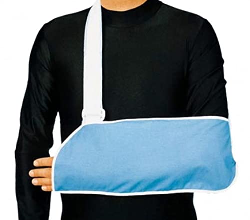 Reggibraccio immobilizzatore in puro tessuto di cotone traspirante. Con bretella di sostegno imbottita che permette di sostenere comodamente il braccio.