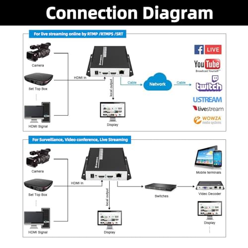 【Supporto per la piattaforma di trasmissione in diretta】Questo codificatore di streaming live H.264 supporta la piattaforma di trasmissione in diretta online, come Ustream, Twitter, Facebook. Funziona anche come encoder live di Youtube.