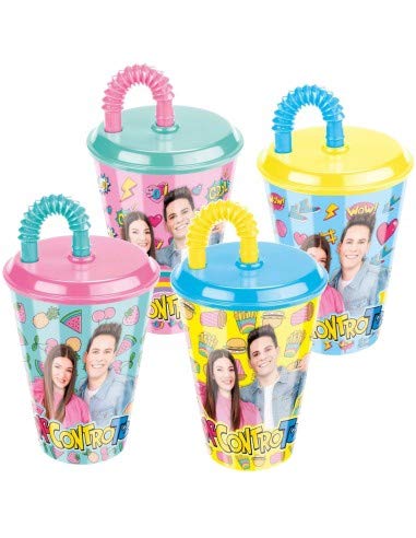 Orkidea party bicchiere di plastica con cannuccia 430 ml me contro te giallo e celeste