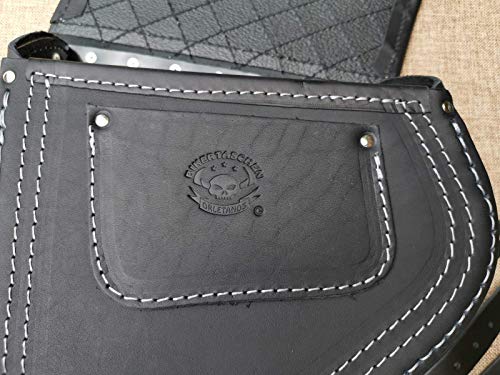 Orletanos Diablo Silver - Borsa basculante compatibile con Harley Davidson Softail Heritage Starrahm, Fatbob dal 2018, con cuciture argentate, in vera pelle, colore: nero
