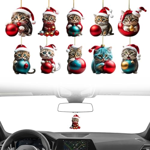 Ornamenti dell'albero di Natale 10 pezzi artigianato di Natale 2d Acrylic Car Specchio Accessori appesi a doppia stampa Ornamenti di gatti di Natale per gli amanti dei gatti Decorazioni natalizie