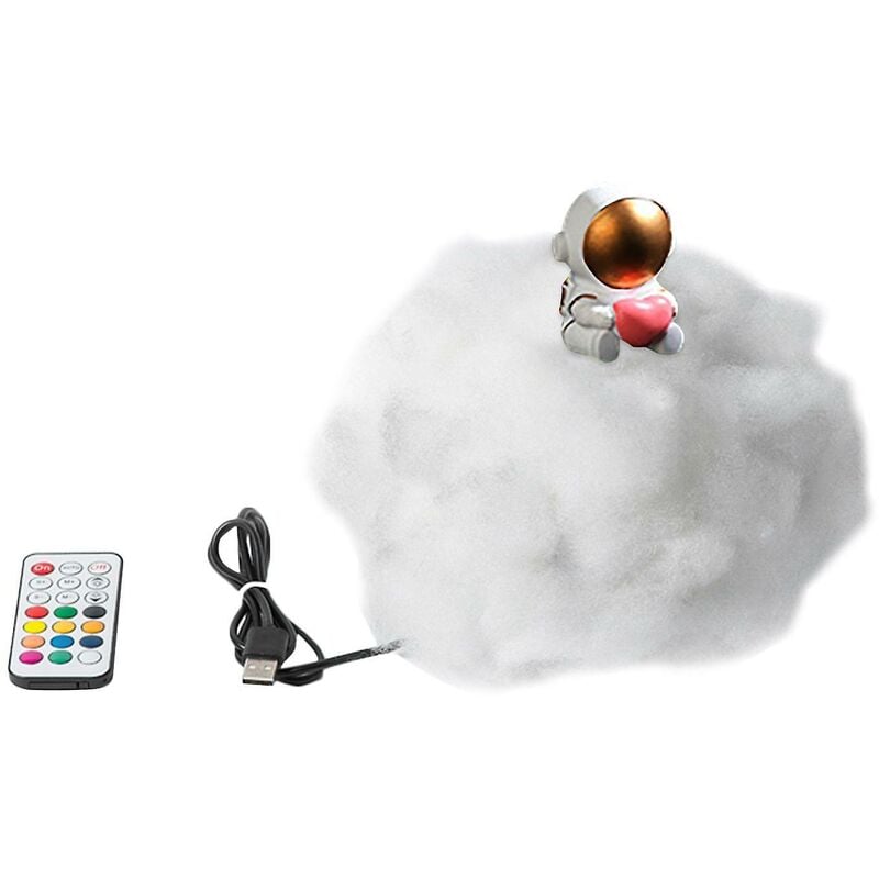 Lampada da astronauta a LED con nuvole colorate con effetto arcobaleno come luce notturna per bambini Descrizione Solo Progettata per aggiungere una presenza celeste a qualsiasi pezzo. Irradiando onde mistiche, questa squisita lampada presenta una nuvola impiantata di LED che cambiano colore che si illuminano e proiettano la luce più deliziosa, insieme a un astronauta incredibilmente dettagliato che si rilassa in cima. C > è un'esperienza emozionante azionare la lampada terrestre con il telecomando. La cosa più bella di questa lampada è che cambierà colore ogni volta che viene toccata delicatamente. I tuoi bambini adoreranno una AVANZATA LUCE DECORATIVA - Esposta su un supporto in legno, questa luce è un modo brillante per accentuare un cortile, un tavolo interno, passerelle e feste, portando un atmosfera misteriosa e romantica. Con 16 affascinanti modalità colore per il telecomando e 12 affascinanti modalità colore per il controllo, questa lampada cambia colore facilmente premendo