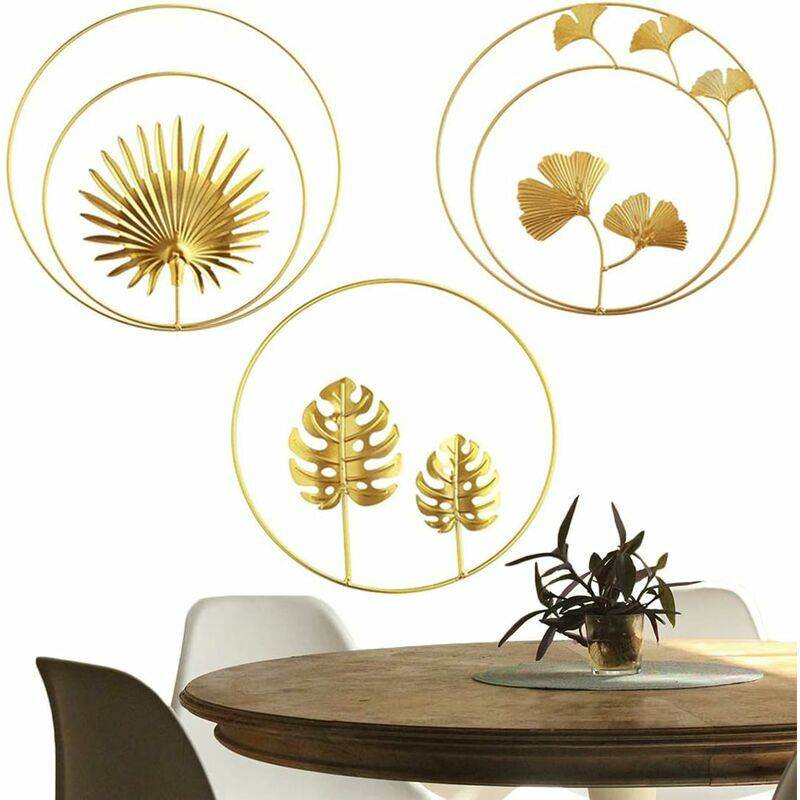 Materiale di qualità - : sculture da parete rotonde in ferro.L'uso di vernice da forno in metallo resistente ad alta temperatura, squisita fattura, liscia e liscia, resistente e non facile da sbiadire. Il ricco effetto tridimensionale lo rende più attraente e ti consente di aggiungere decorazioni accattivanti a qualsiasi parete della tua casa. (Forma foglia): decorazione 3D Il design a forma di foglia ti dà un senso di freschezza dalla natura e ogni momento in casa è più confortevole e rilassante. (Stile di lusso leggero): appeso a parete in foglia di ginkgo Con l'oro popolare al giorno d'oggi, l'abbellimento in oro rompe l'ottusità del muro, sembra alla moda e versatile, aggiungendo un'atmosfera nobile ed elegante alla tua casa.;