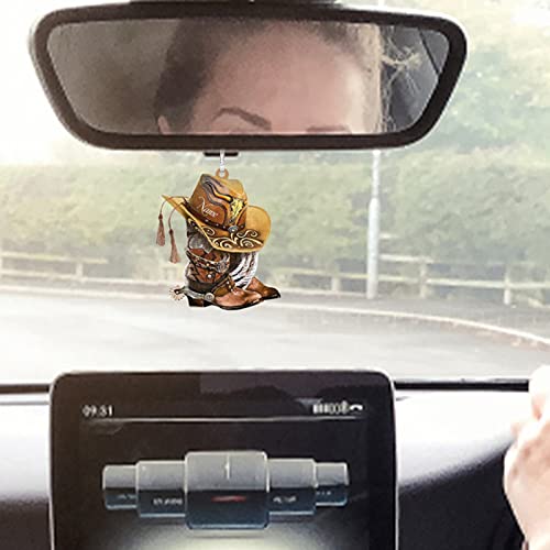 Ornamento Per Auto Da Sella Per Cavalli In Acrilico, Cappello Da Cowboy Stivali Da Cowboy Accessori Per Auto Ciondolo Per Specchietto Retrovisore Per Auto Novità 2D, Ciondolo A Sella Piatta