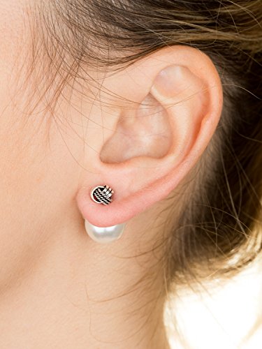 Con perno in argento Sterling a doppia sfera e nodo d'amore in argento Sterling e perla rotonda bianca.