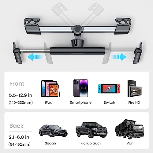【Compatibilità universale】ORNARTO Supporto Tablet Poggiatesta Auto perfetto per tutti i dispositivi da 4,7-12,9 pollici (nota: le dimensioni si riferiscono al dispositivo, non alla lunghezza del supporto), come ad esempio iPad Pro 12,9/ iPad Air / iPad / iPad mini 6, Kindle Fire HD e-reader, Huawei Mediapad, Nintendo Switch, ASUS Zenpad, Samsung Tab, ecc